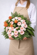 Homenageie quem partiu com uma coroa fúnebre elegante e delicada, composta por flores frescas em tons neutros, envolvidas em folhagem verde que lhe dá um aspeto harmonioso e sereno.